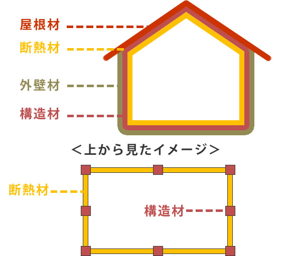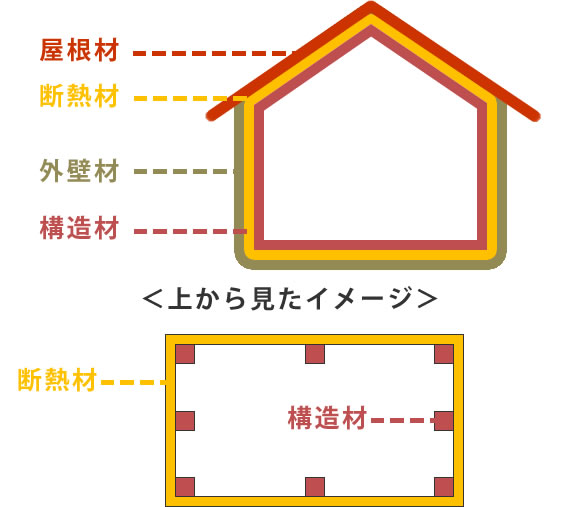 断熱材を柱や梁などの構造躯体の外側に張りあげる方法