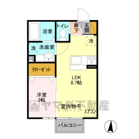 | 間取り詳細 | DK8.7畳、洋3畳 | 保証会社 | 加入要 初回保証料35000円、月額保証料賃料等総額の1% 800円/月(その他商品あり) |
